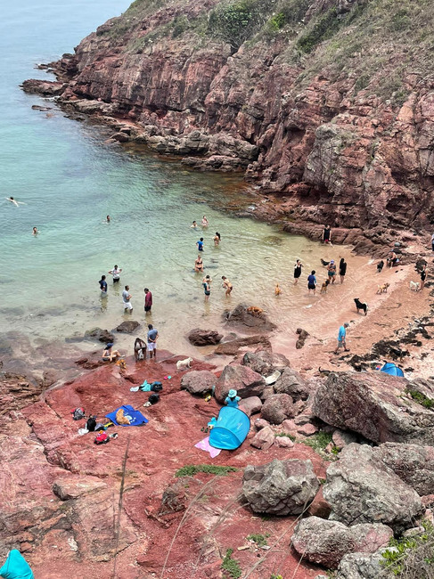 Right next door to Basalt Island, lies Bluff Island, where you will find some of the softest, powdery white sands on Ung Kong Chau beach. It is a popular destination for junk boats, but you can also charter a speedboat to get you to the island. We recommend our friends over at LIK Speedboat Service to help you get to and from. Plus, dog-friendly Junk Boat services are also available - Win! Although Bluff island is also home to a beautiful arch (Sha Tong Hau) and popular amongst experienced coasteerers, it is also known for its unique "Clasped Hands Rock" which is a short 20-30 minute bush-whacking hike to the left of the beach.