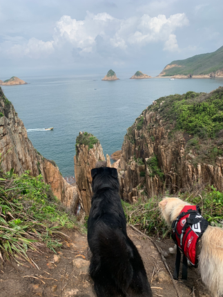 Ninepin Islands, also known as Kwo Chau, is actually a group of 29 islands in the eastern waters of Hong Kong, and got its name from British sailors for its unique rock formations resembling bowling pins. East, North and South Ninepin Islands are the most popular of the group, and although there is less to explore with the dogs on North Ninepin Island - it is still doable! Once you alight on North Ninepin Island, there is one path to the left of the pier, which leads to the lighthouse and a unique rock platform, known as the "Sunken Ship Crack" (pictured left), and Big Stove Arch, and to the right of the pier, you'll find the Cannon Rock (pictured centre). South Ninepin Island has a lot more to explore in terms of hiking with the pup, with plenty of the iconic hexagonal columns, a sea arch tucked away behind the beach and a rock chamber in the form of a slit (pictured right) to the right of the island from the beach. However, it is very exposed so if you plan to spend sometime here, do bring a pop-up tent to provide you and the pups some shelter. The most important thing to note when planning your visit to the Ninepin Islands, is that they can only be visited between May to September due to the rough wind and sea conditions, so be sure to plan ahead! To get to any of these islands, we recommend chartering a speedboat from Sai Wan Ho or Sam Ka Tsuen for a 20-30 minute journey. Speedboat contact numbers: (+852) 9528 3501 or (+852) 9166 1382 - Chinese only, departing from Sai Wan Ho - or (+852) 9383 2432 departing from Sam Ka Tsuen